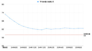 ランニング 25年9月 体重推移 朝活ランニングを続けてはいるものの、目標体重までのあと5キロがなかなか落ちません。いや、全く落ちません!でも運動は気持ち良いから続ける! 2025.10.01 ランニング日々継続は力なり