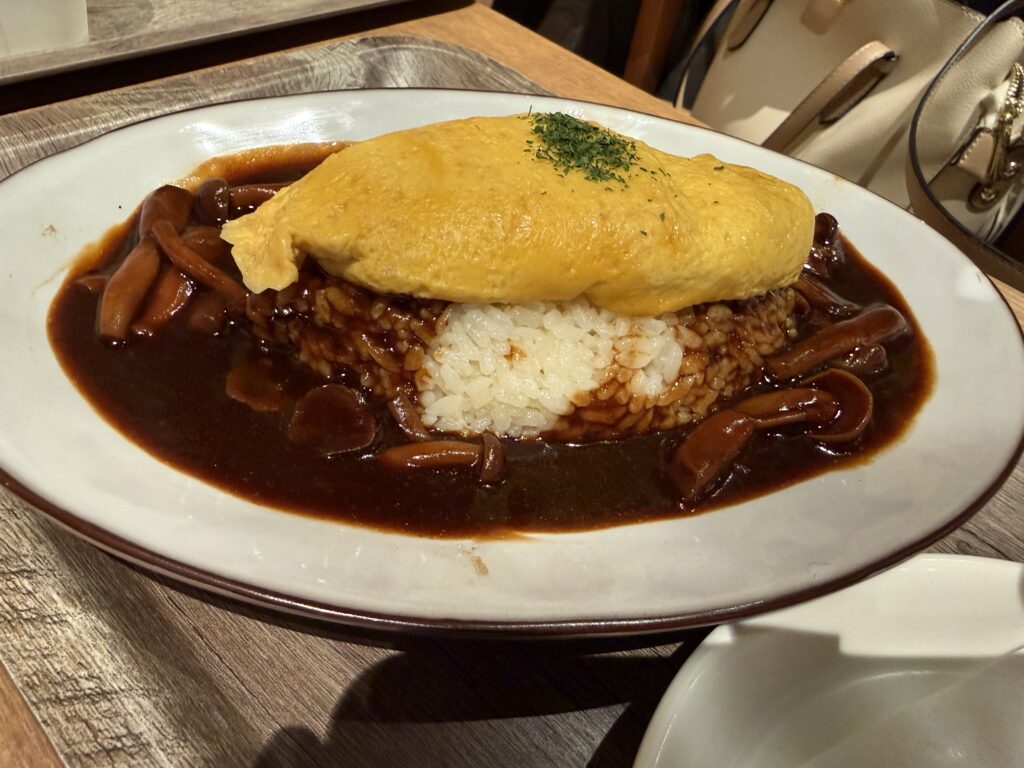 パスタはモチモチの食感が美味。オムライスは安心感のある美味しさ。